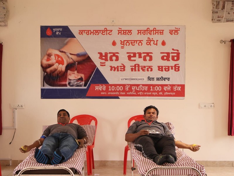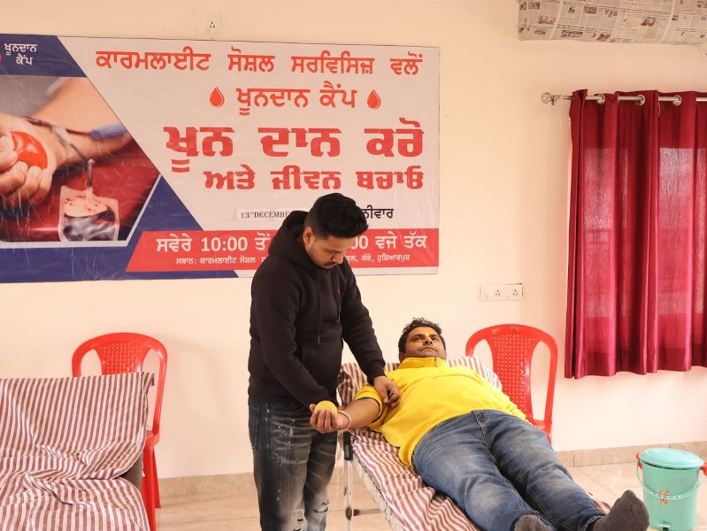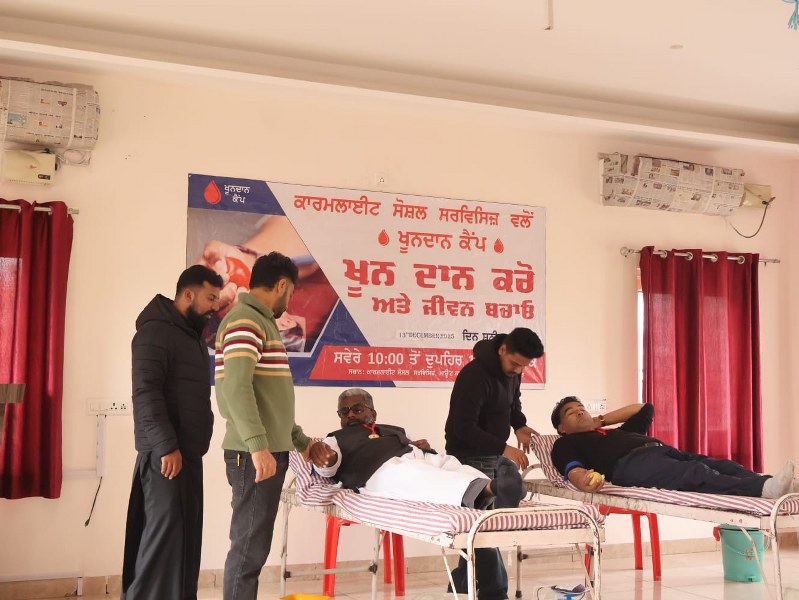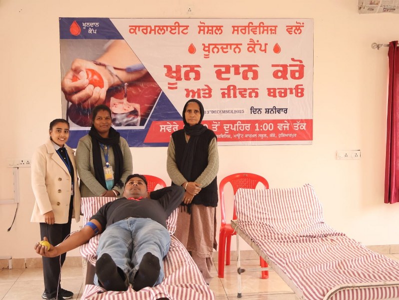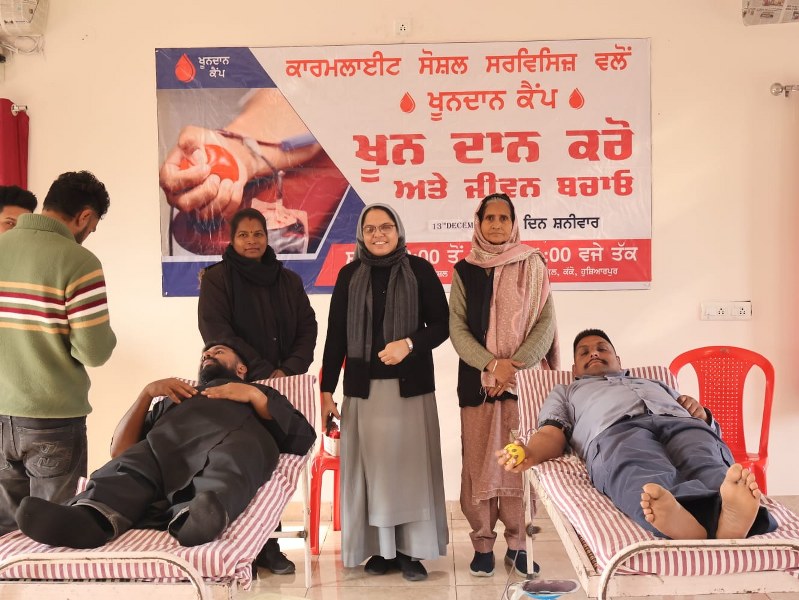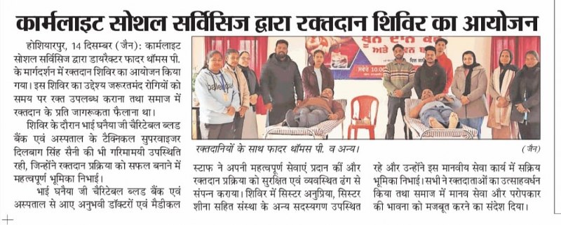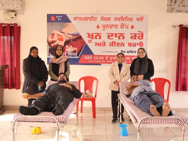 A Blood Donation Camp was successfully organized at Carmelite Social Services under the guidance of Father Thomas P. Doctors from Bhai Ghanayia Ji Charitable Blood Bank & Hospital graciously provided their services. The camp was attended by Sister Anupriya, Sister Sheena, and other members of the institution, making the initiative a meaningful step towards humanitarian service.